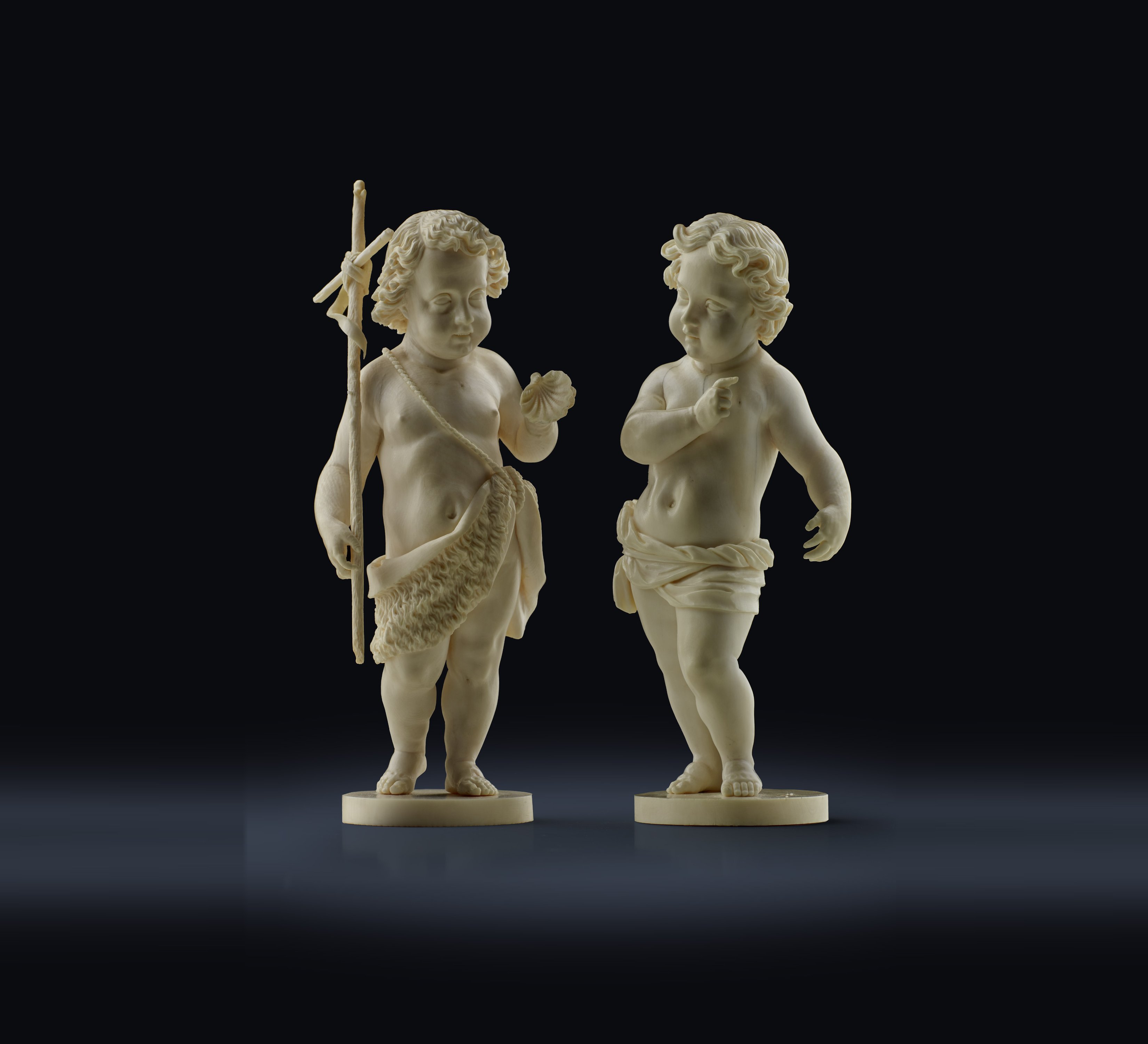 Ivory Height: 15 and 14 cm, on round ivory bases