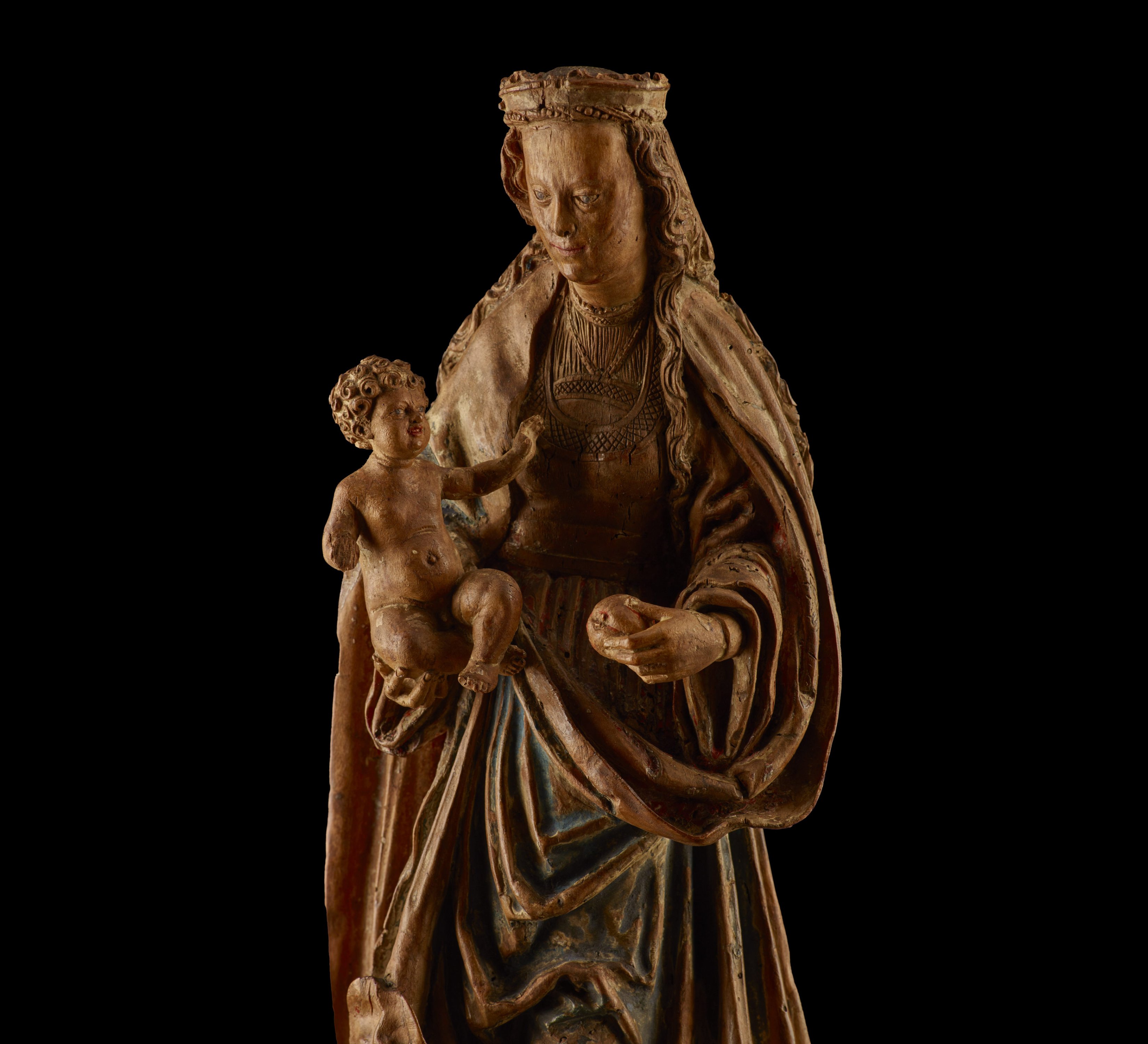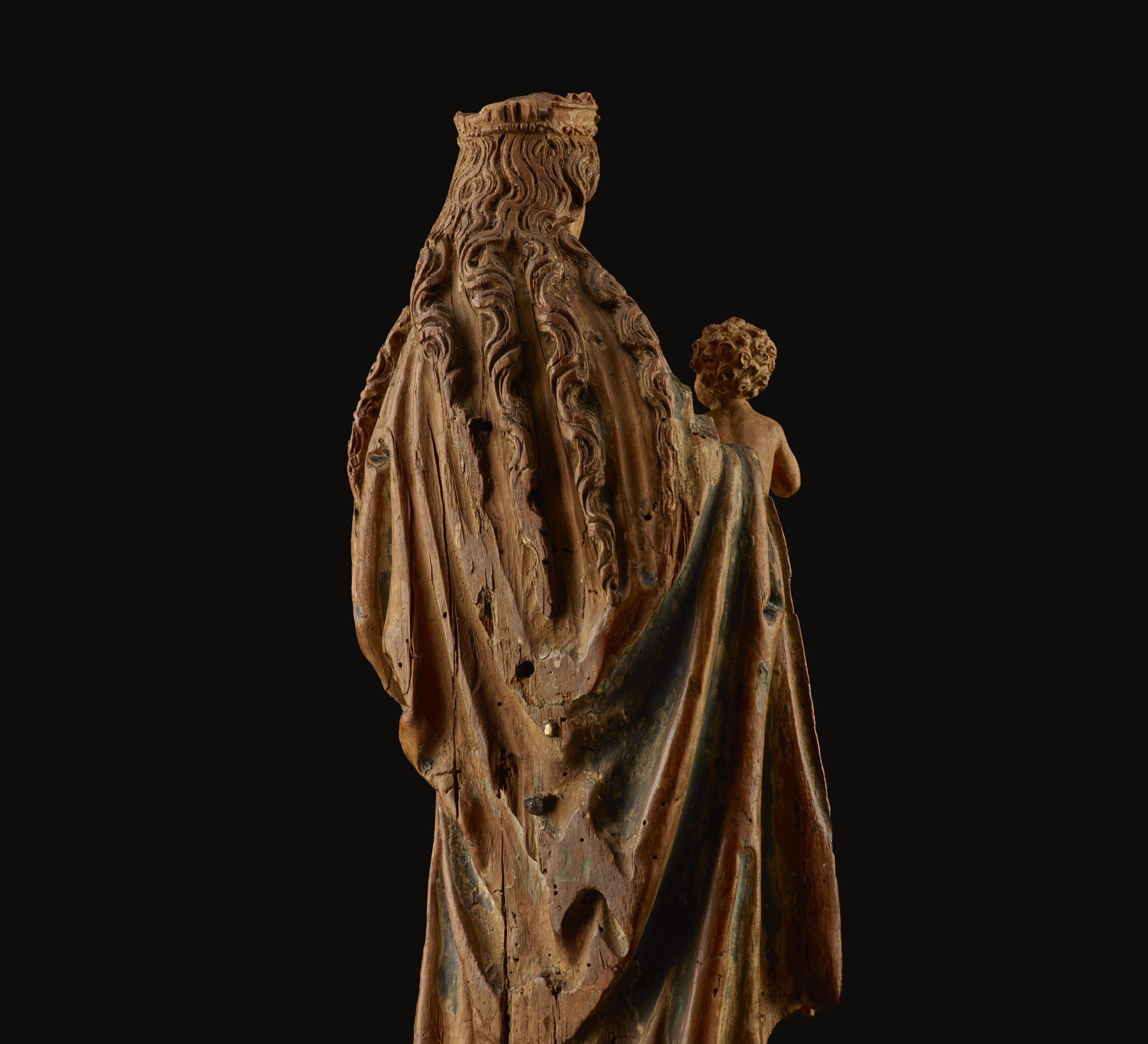 SOLD Lime wood, sculpture in the round, with traces of the original polychromy Height: 42 cm